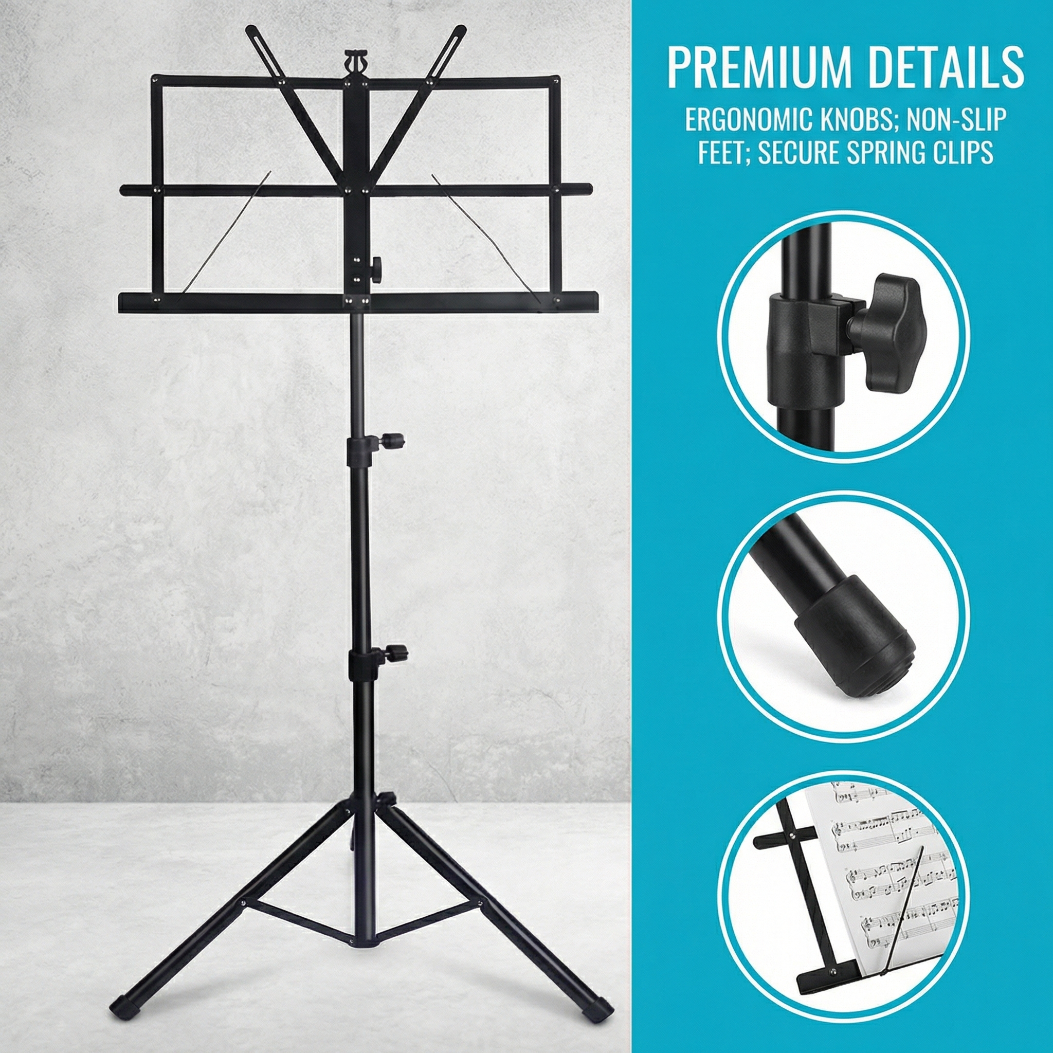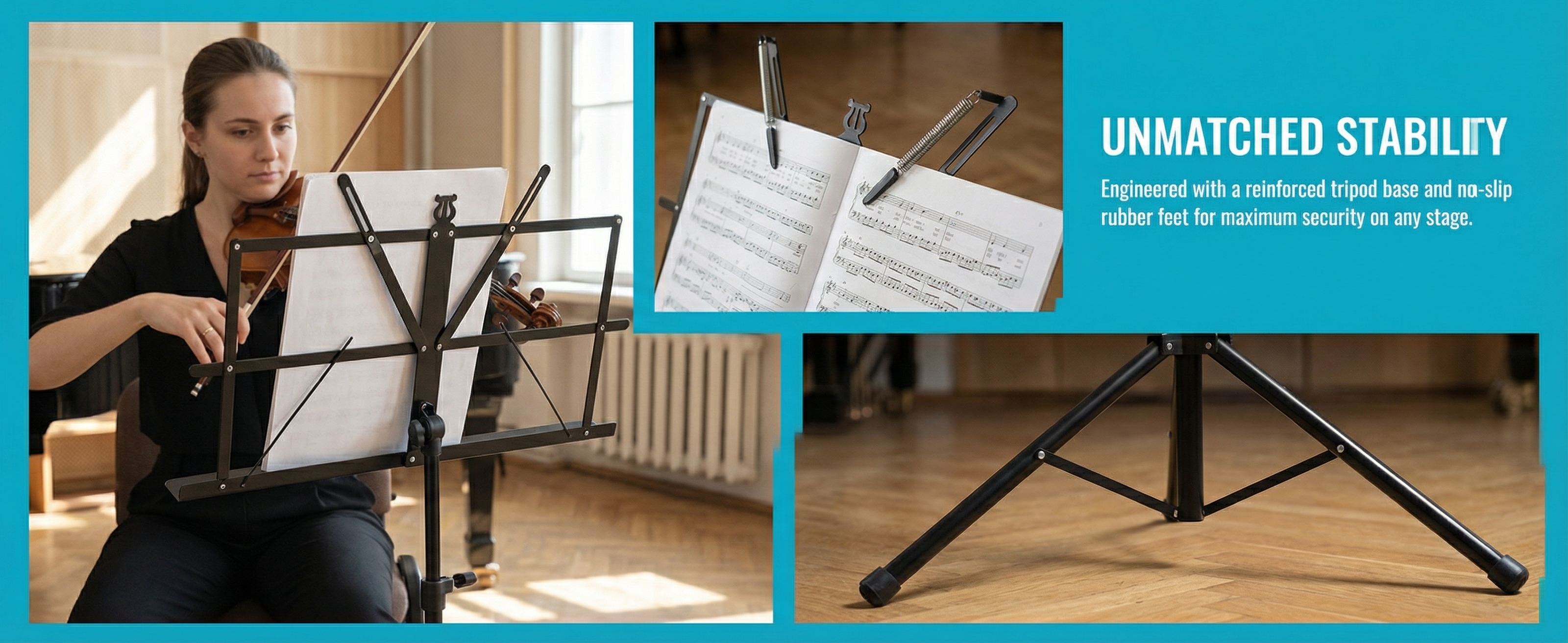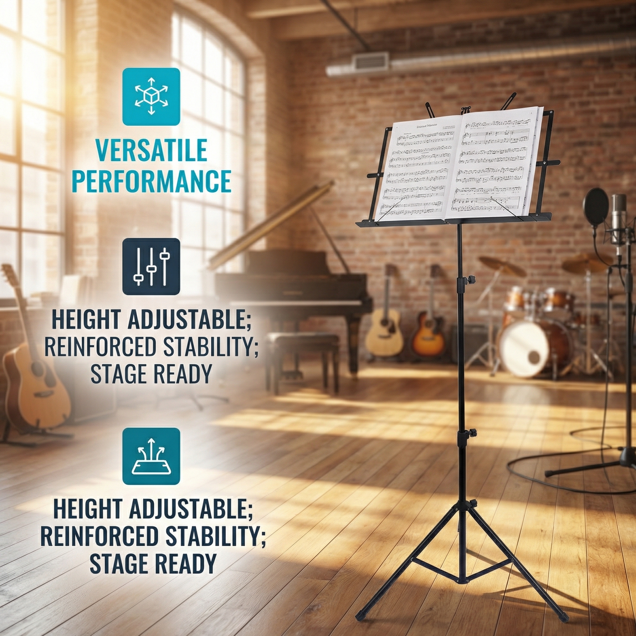• Stable Construction :The stand's stable construction ensures that your music sheets stay in place during your performance, providing a reliable and consistent experience.