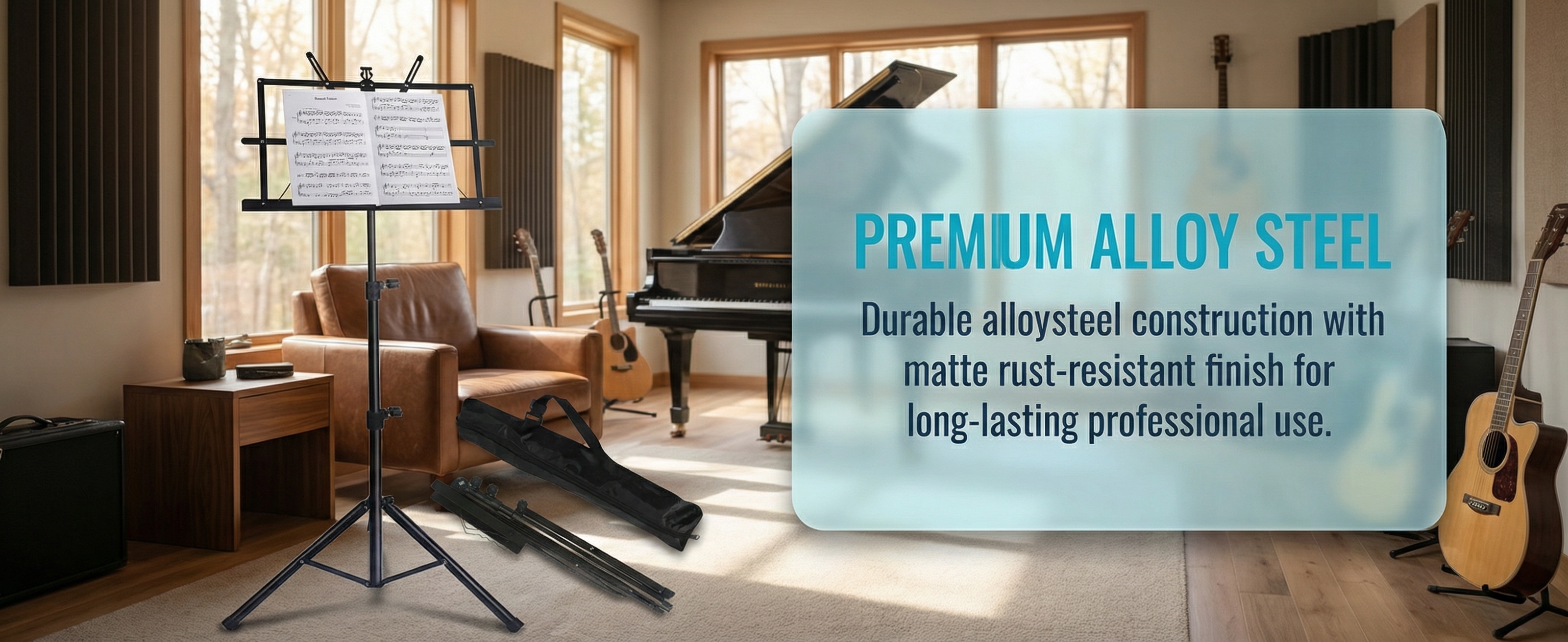 • Collapsible and Folding :The stand's collapsible and folding design makes it easy to store and carry, making it perfect for musicians on the go.
